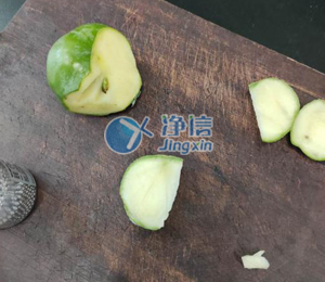 如圖為我們的實驗材料,研磨的是生柿子(圖一為樣品研磨前,圖二為樣品研磨后)