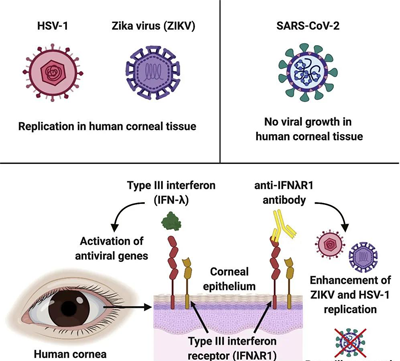 美國《細胞報告》雜志近期發(fā)表的一項研究表明,人類眼角膜對寨卡病毒和單純皰疹病毒1型易感,但似乎對新冠病毒有抵抗力。在此項研究中,專家們使用了25份角膜組織進行實驗,其中既包括人類角膜組織,也有實驗鼠供體的角膜組織,并將它們暴露于三種不同的病毒中,分別是:ZIKV、HSV-1和新冠病毒,結(jié)果發(fā)現(xiàn)新冠病毒沒有在角膜中繁殖。至于人角膜和結(jié)膜如何能夠抵抗新冠病毒,該研究團隊還不能完全確定。