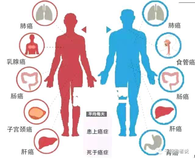 在我國(guó),癌細(xì)胞最頻繁“光顧”的人體組織,位居男性發(fā)病率前十位的分別是,肺、胃、肝、食管、大腸癌、膀胱、胰腺、腦、淋巴、腎;女性為肺、乳腺、大腸、胃、肝、食管、卵巢、宮頸、胰腺、腦。“可以說(shuō),這十種腫瘤占據(jù)了所有腫瘤類(lèi)型的80%以上。